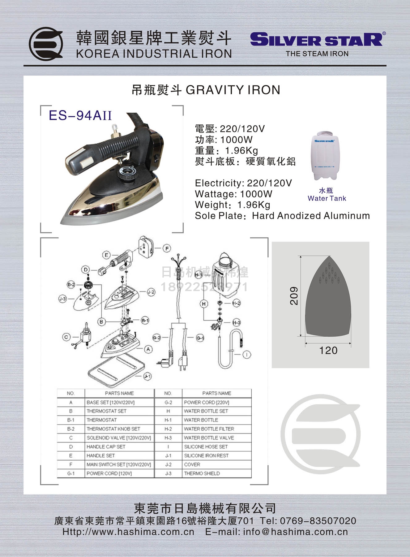 • SILVER STAR銀星牌ES-94A熨斗II吊瓶式/燙斗