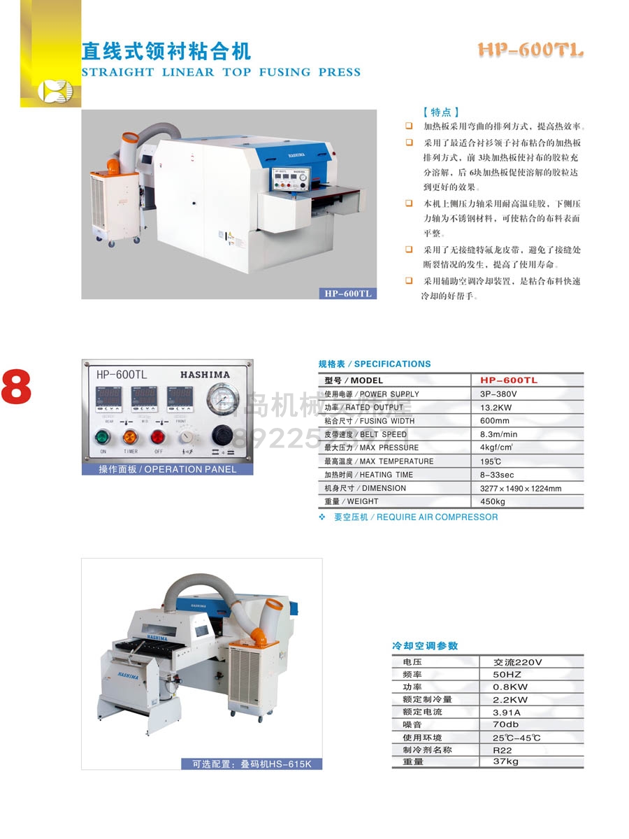 加熱板采用彎曲的排列方式,提高熱效率。 采用了最適合襯衫領(lǐng)子襯布粘合的加熱板排列方式,前3塊加熱板使襯布的膠粒充分溶解,后6塊加熱板促使溶解的膠粒達到更好的效果。 本機上側壓力軸采用耐高溫硅膠,下側壓力軸為不銹鋼材料,可使粘合的布料表面平整。 采用了無(wú)接縫特氟龍皮帶,避免了接縫處斷裂情況的發(fā)生,延長(cháng)了使用壽命。 采用輔助空調冷卻裝置,是粘合布料快速冷卻的好幫手。 |